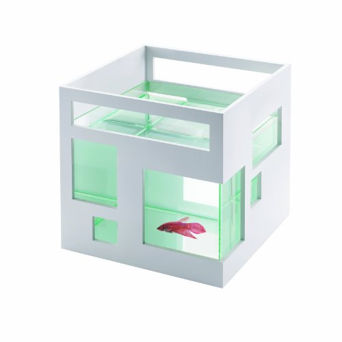 The Umbra FishHotel is an award-winning modern home for your finned friends. Modeled after a contemporary condominium, this reinvented aquarium features a sleek white shell with assymetrical "windows." Individual units can be stacked to create a condo effect. Glass bowl is removable for cleaning.